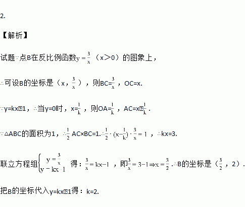如图,一次函数y=kx﹣1的图象与x轴交于点A,与反比例函数(x>0)的图象交于点B,BC垂直x轴于点C.若△ABC的面积为1,则k的值是 .