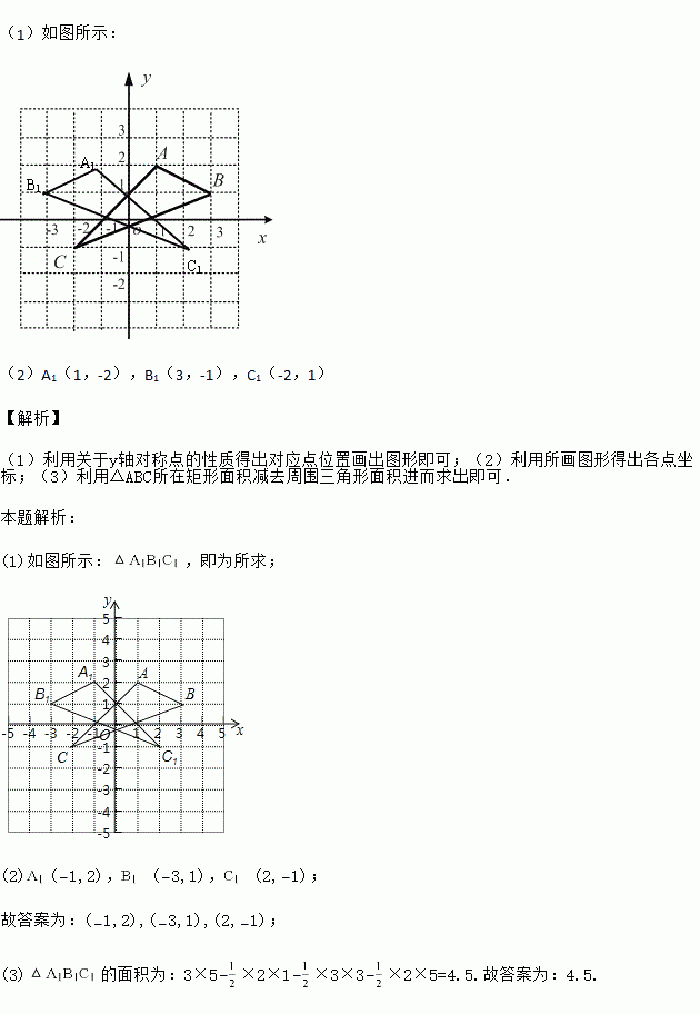 如图,在平面直角坐标系中,A(1,2),B(3,1),C(-2,-1).![]()