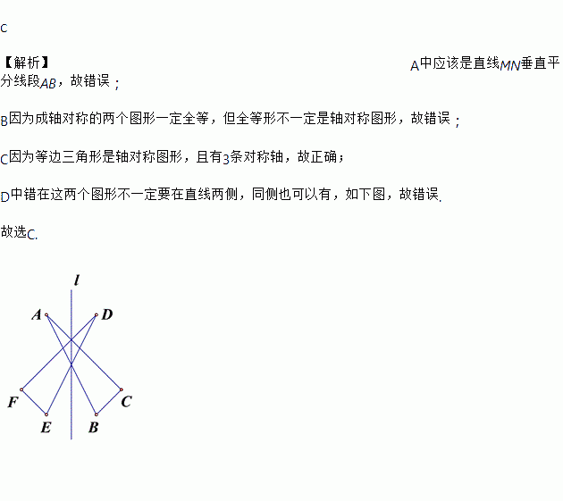 B. Èç¹û¡÷ABC¡Õ¡÷DNF,ÔòÒ»¶¨´æÔÚÒ»ÌõÖ±ÏßMN£¬Ê¹¡÷ABCÓë¡÷DNF¹ØÓÚMN ¶Ô³Æ.