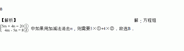 已知二元一次方程组 ,如果用加减法消去n,则下列方法可行的是( )