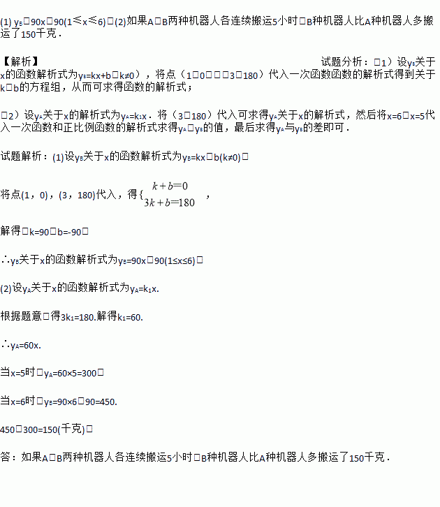 (2)如果A,B两种机器人连续搬运5小时,那么B种机器人比A种机器人多搬运了多少千克?
