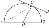 分析:根据弦切角定理得∠A=∠BCD=40°,再根据AB是直径,可知∠ACB=90°,进而可求出∠ABC=50°.
