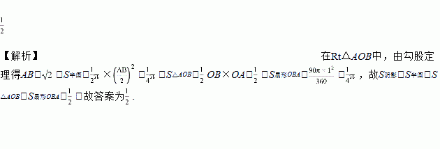 如图,扇形AOB的半径为1,∠AOB=90°,以AB为直径画半圆,则图中阴影部分的面积为________.