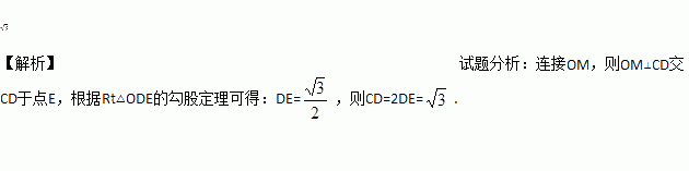 半圆形纸片的半径为1cm,用如图所示的方法将纸片对折,使对折后半圆弧的中点M与圆心O重合,则折痕CD的长为______cm.