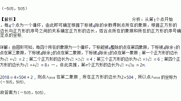 如图,所有正方形的中心均在坐标原点,且各边与x轴或y轴平行,从内到外,它们的边长依次为2,4,6,8,…,顶点依次用,,,…表示,则顶点的坐标是_____.