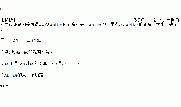 如图,在△ABC中,BD平分∠ABC,交AC于点D,BC边上有一点E,连接DE,则AD与DE的关系为( )