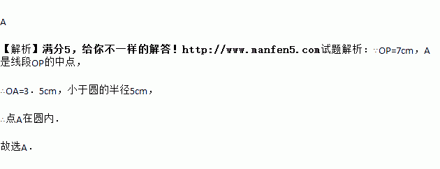 已知⊙O的半径为4cm,A为线段OP的中点,当OP=7cm时,点A与⊙O的位置关系是( )