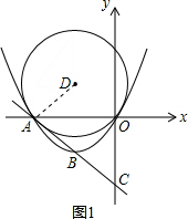 ∵抛物线y=ax2+bx(a>0)经过A、O两点,顶点是B,点B与点D关于x轴对称,OD为半径,