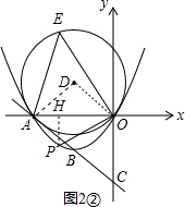(3)过点P作PH⊥x轴于H,如图2①、图2②,易得∠ADO=90°,根据圆周角定理可得∠AEO,从而求出∠POA,从而可得到直线OP的解析式,然后解直线OP与抛物线的解析式组成的方程组,就可得到点P的坐标.