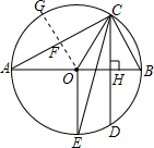 分析:(1)根据圆周角定理由AB为⊙O的直径得到∠ACB=90°,而∠BAC=30°,所以∠B=60°,于是可判断△OBC为等边三角形,根据等边三角形的性质由CD⊥OB易得CD平分OB;