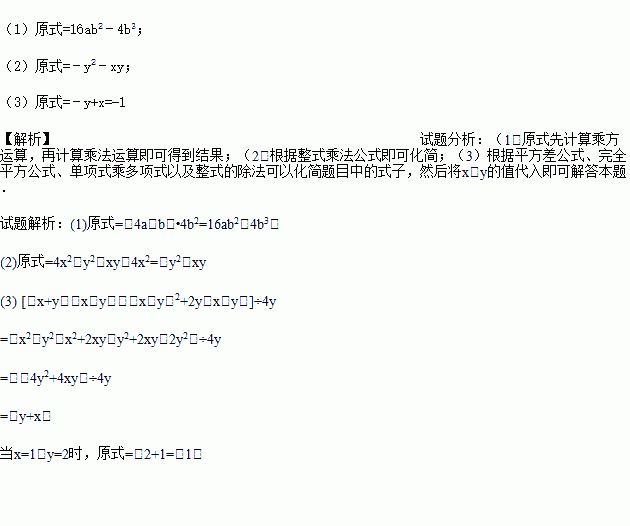 (3)化简求值:[(x+y)(x﹣y)﹣(x﹣y)2+2y(x﹣y)]÷(4y),其中x=1,y=2.