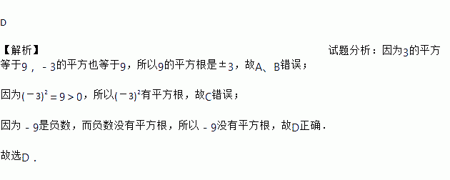 B. 因为-3的平方等于9,所以9的平方根为-3