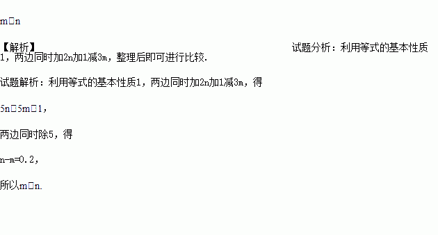 已知3n-2m-1=3m-2n,运用等式的性质,试比较m与n的大小.
