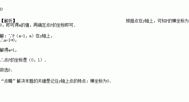 如果P(m-1,m)在y轴上,那么点P的坐标是( )