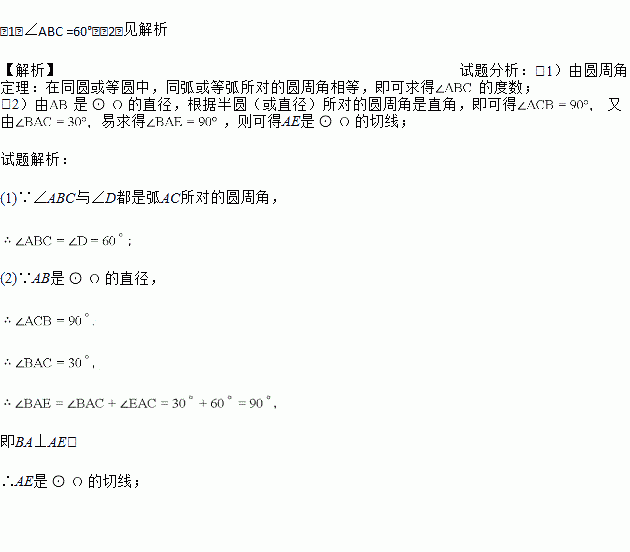 (2)求证:AE是圆O的切线.