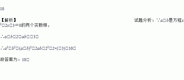 若a,b是方程x2﹣2x﹣3=0的两个实数根,则a2+b2=________ .