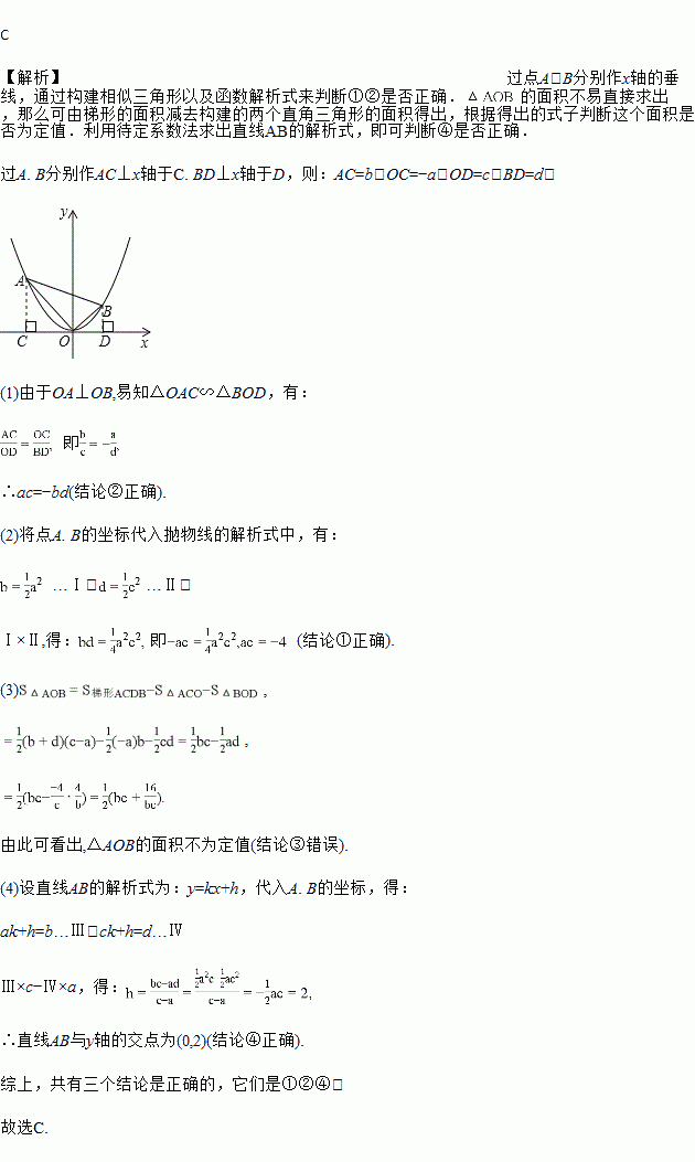 上一动点,OB⊥OA交抛物线于点B(c,d).当点A在抛物线上运动的过程中(点A不与坐标原点O重合),以下结论:①ac为定值;②ac=﹣bd;③△AOB的面积为定值;④直线AB必过一定点.正确的有( )