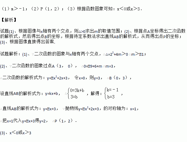 (1)如果二次函数的图象与x轴有两个交点,求m的取值范围;