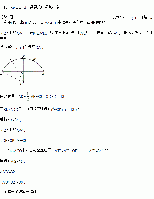 (2)当洪水泛滥到跨度只有30米时,要采取紧急措施,若拱顶离水面只有4米,即PE=4米时,是否要采取紧急措施?