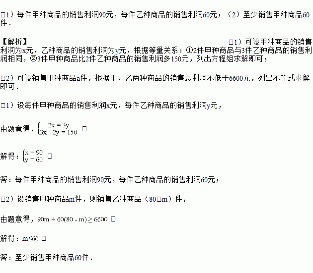 (2)若甲、乙两种商品的销售总利润不低于 6600 元,则至少销售甲种商品多少件?