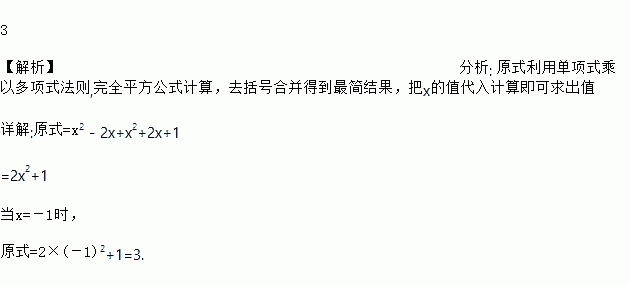 先化简,再求值:x(x一2)+(x+1)2,其中x =-1.