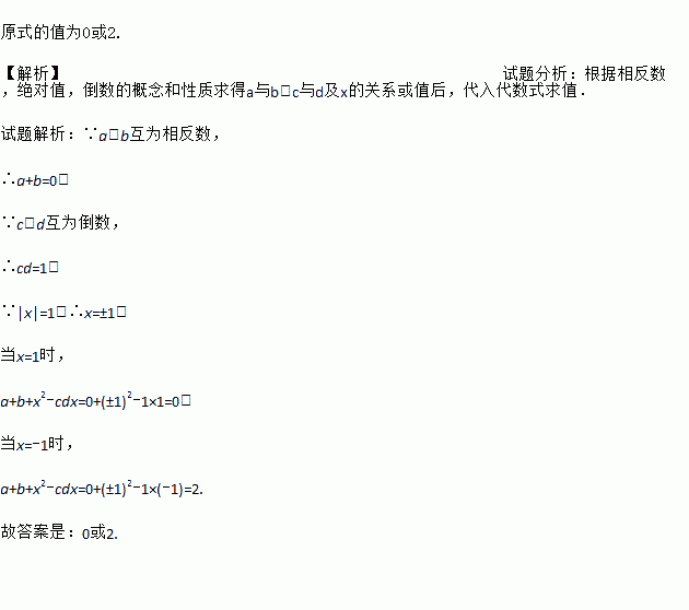 已知a,b互为相反数,c,d互为倒数,x的绝对值为1,求a+b+x2﹣cdx.