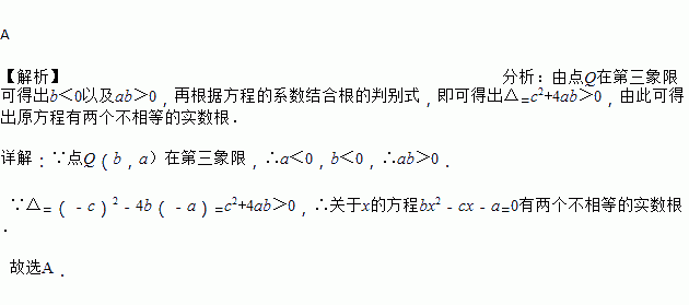 已知a,b,c为常数,且点Q(b,a)在第三象限,则关于x的方程bx2﹣cx﹣a=0的根的情况是( )