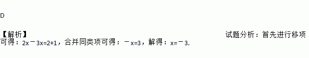 方程2x-1=3x+2的解为( )
