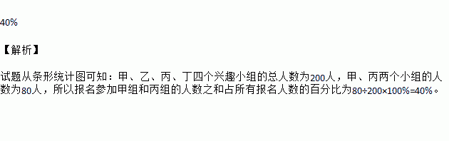 某校报名参加甲、乙、丙、丁四个兴趣小组的学生人数如图所示,那么报名参加甲组和丙组的人数之和占所有报名人数的百分比为 .