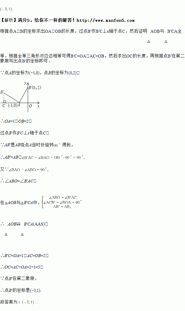 如图,在平面直角坐标系中,点的坐标为,点的坐标为,以点为中心,将线段逆时针旋转,则点的对应点的坐标是________.