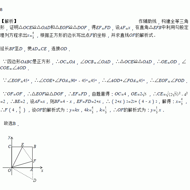 如图,正方形OABC中,点B(4,4),点E,F分别在边BC,BA上,OE=