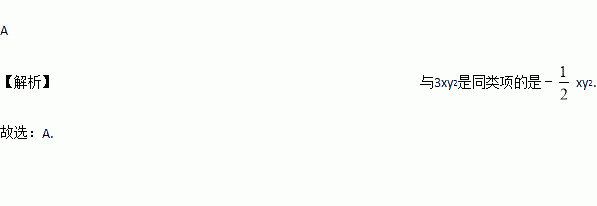 下列单项式中,与3xy2是同类项的是( )