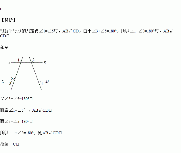 如图,能判断直线AB∥CD的条件是( )