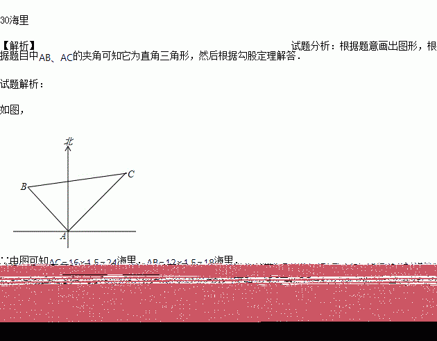 一轮船以16海里/时的速度从A港向东北方向航行,另一艘船同时以12海里/时的速度从A港向西北方向航行,经过1.5小时后,它们相距多少海里?