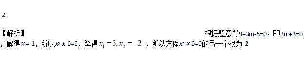 关于x的一元二次方程x2+mx-6=0的一个根的值为3,则另一个根的值是_____.