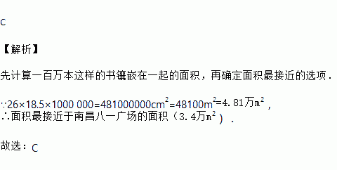 我们用的数学教科书的封面是长为26cm,宽为18.5cm的矩形,设想一百万本这样的书镶嵌在一起,面积最接近于( )