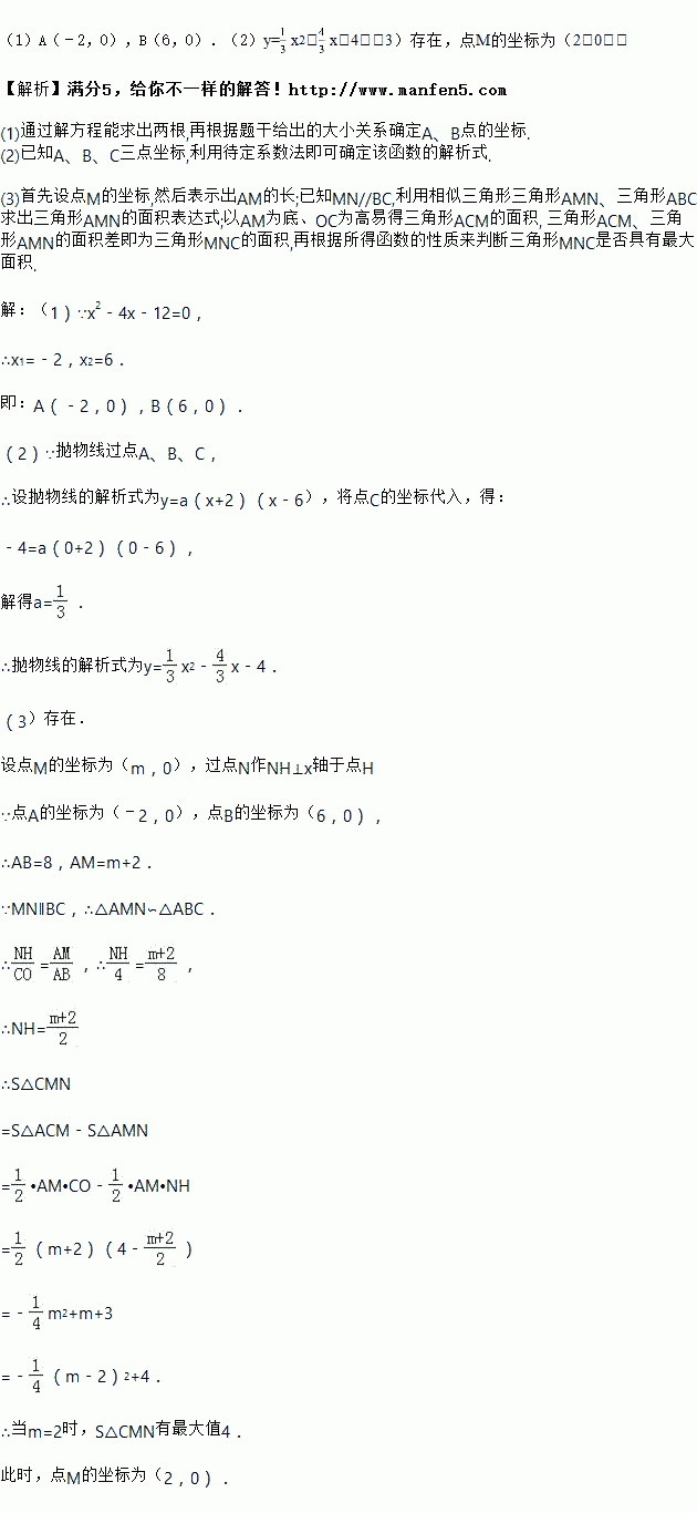(3)点M是线段AB上的一个动点(不与A、B两点重合),过点M作MN∥BC,交AC于点N,连接CM,在M点运动时,△CMN的面积是否存在最大值?若存在,求出△CMN面积最大时点M的坐标;若不存在,请说明理由.