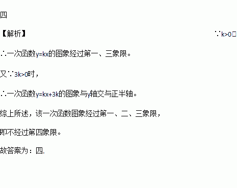 当k>0时,一次函数y=kx+3k的图象上不经过第_______象限.