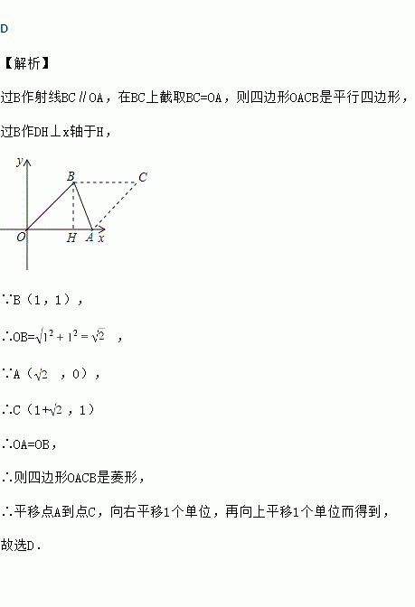 ,0),B(1,1).若平移点A到点C,使以点O,A,C,B为顶点的四边形是菱形,则正确的平移方法是( )
