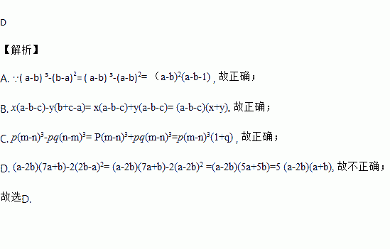 C. P(m-n)3-Pq(n-m)3=P(m-n)3(1+q) D. (a-2b)(7a+b)-2(2b-a)2=(a-2b)(5a+5b)