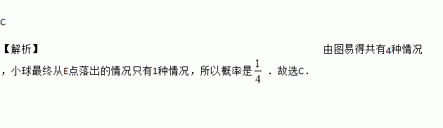 小球从A点入口往下落,在每个交叉口都有向左向右的可能,且可能性相等.则小球最终从E点落出的概率为( )