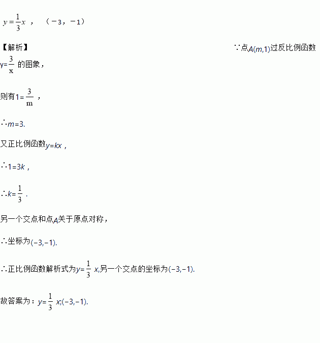 的图象都过A(m,1)点,求此正比例函数解析式为________,另一个交点的坐标为________.