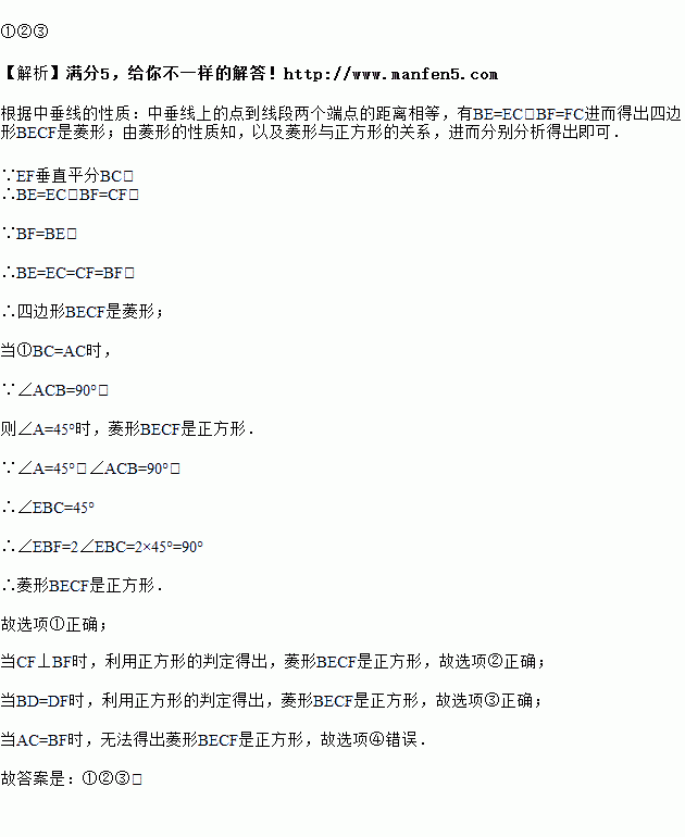 如图,在中,,的垂直平分线交于点,交于点,且,添加一个条件,能证明四边形为正方形的是________.