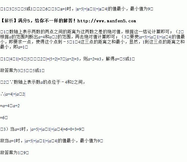 (3)当a= 时,|a+5|+|a﹣1|+|a﹣4|的值最小,最小值为 .