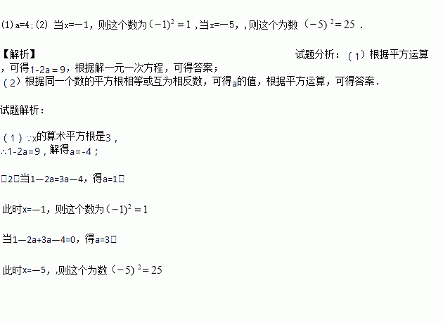 已知x的算数平方根为3,求a的值;
