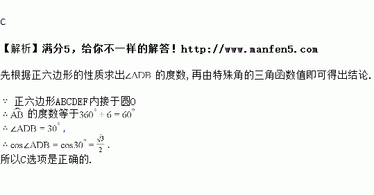 如图所示,正六边形内接于圆,则的值为