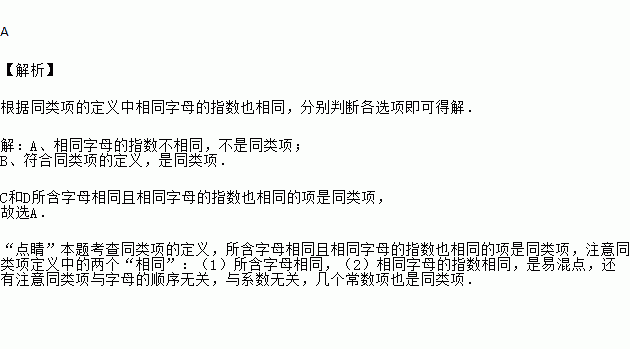 下列各组单项式中,不是同类项的一组是( )