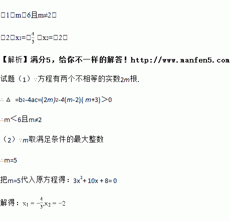 已知关于x的一元二次方程(m﹣2)x2+2mx+m+3=0 有两个不相等的实数根.
