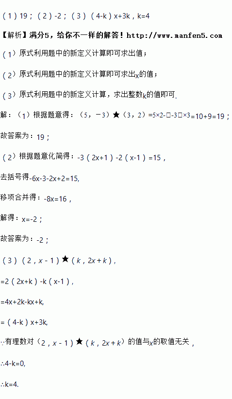 (3)若有理数对(2,x-1)★(k,2x+k)的值与x的取值无关,求k的值.