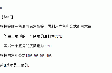 已知等腰三角形的一个底角的度数为70°,则另外两个内角的度数分别是( )